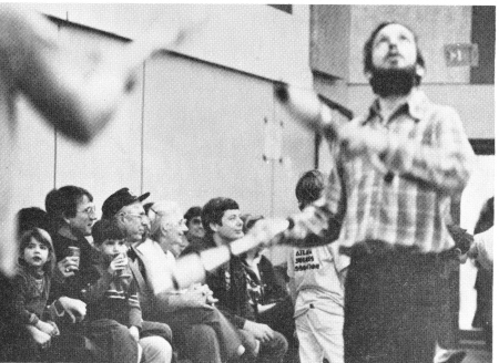 Louis Zeller of Marshall, North Carolina, "Captain Slow," another former trophy winner, put on four minutes of foolishness. Besides emptying jumper cables and a hammer out of a tote bag, he juggled three Cheez-It crackers and passed out a deck of cards to the crowd. |