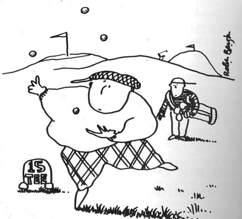 ![]() WAITING TO TEE BECAME SUCH A BORE, HE STARTED WITH THREE, BUT SOMEONE YELLED FORE. |