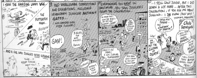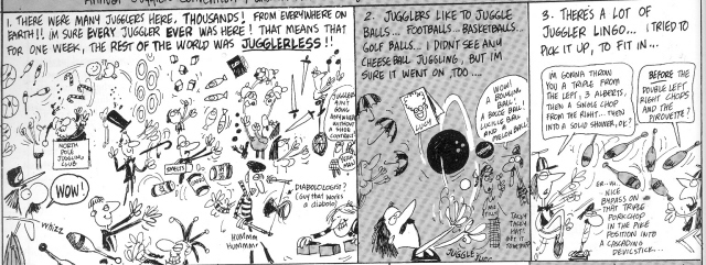 An object dropper from way back, Investigative Cartoonist Mike Ricigliano attends the 42nd Annual Jugglers Convention, and discovers a unique community.